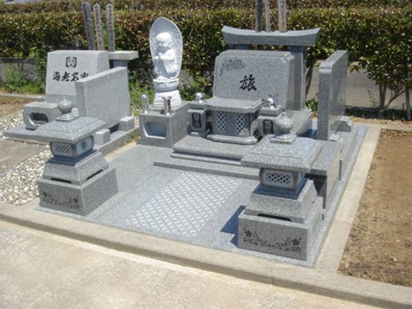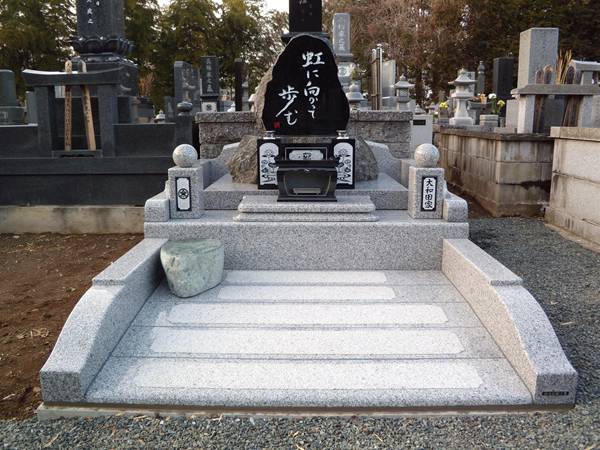 供養塔:インド産アーバングレー [ 山田霊園規格洋型 ] 山田霊園の規格墓所に全ての付属品を設置した墓所を施工致しました。 |